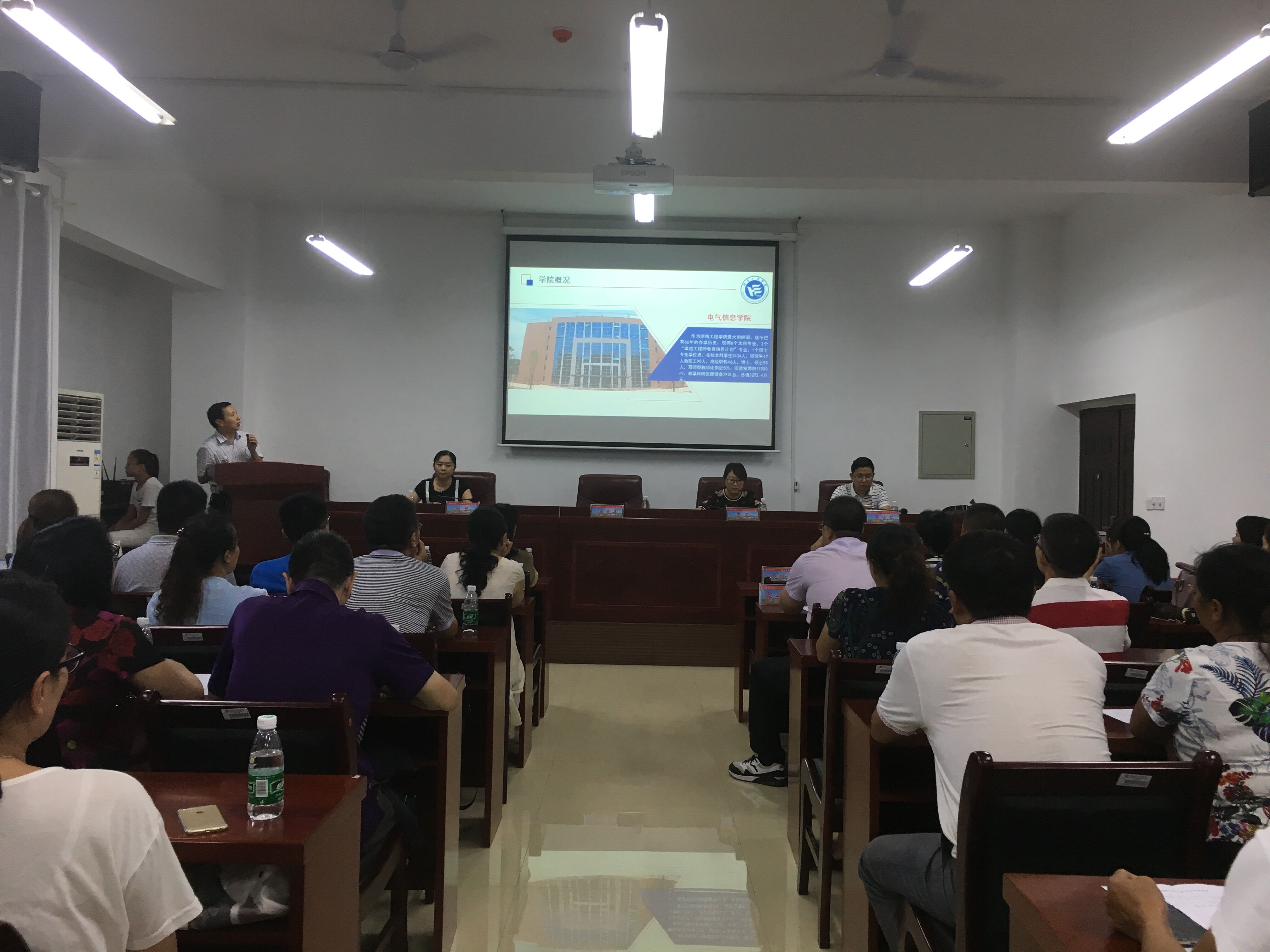 电气信息学院院长唐勇奇首先对新生家长表示真诚的欢迎,并介绍了87978797威尼斯老品牌、专业设置、学院特色和办学成效,通过一系列的数据结果让家长更直观了解学院的发展和办学优势。同时,为了能够让家长进一步了解学校在教学管理和学生管理工作上的举措,副院长胡慧介绍了学校教学管理文件的核心条例,并表示学院的软硬件都为学生的健康成长成才提供了有力保证,请家长们放心。党总支副书记黄望军就学生工作的情况进行了介绍和说明,也与大家分享了自身的经验和感悟,学生培养离不开家长的努力,希望各位家长积极做“看不见的风筝线”,培养学生独立品格,提升学生独立能力。